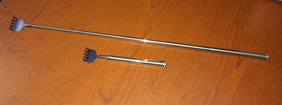 The first three people to submit the correct answer will receive an MSC-branded, stainless steel back scratcher! (And check out that telescoping action! Wow!) Its five-fingered curved design reaches from 5 1/2 in. to 19 1/4 in. in length.