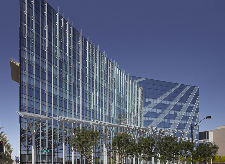 Located on Main Street between Bonneville and Clark Avenue, the seven-story building serves to anchor and build upon the urban renewal program seeking to revitalize the downtown Union Park neighborhood of Las Vegas. The steel-and-glass City Hall facility boasts a modest area of approximately 300,000 sq. ft, which includes 70 restricted underground parking spaces. The LEED Gold-rated facility houses a 500-seat council chamber, a public exhibit area and 250,000 sq. ft of governmental offices.