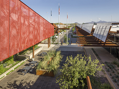 “Simple materials beautifully detailed,” commented William Bradford, an assistant director/project manager with the University of Illinois at Chicago’s Office for Capital Programs, and the owner juror in the competition. “The design fits the desert location.”