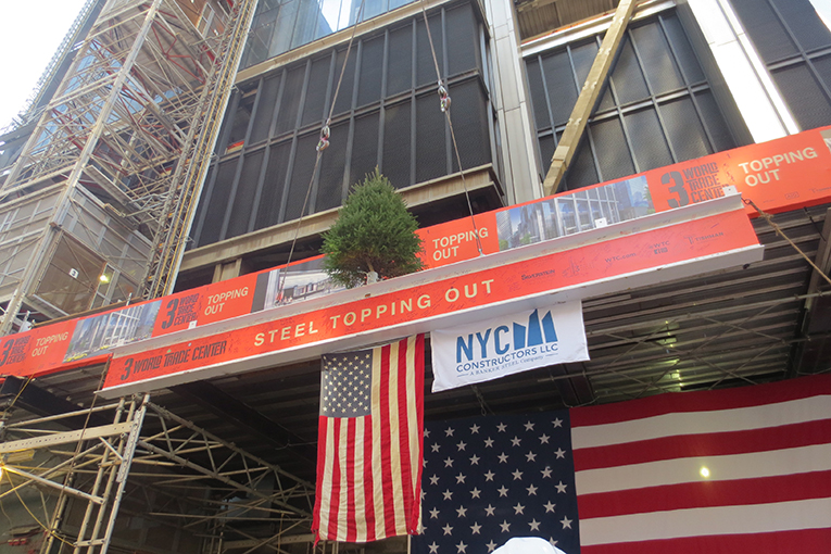 Structural steel for 3 World Trade Center topped out last week. At 1,079 ft and 80 floors, the 2.5-million-sq.-ft tower is envisioned to be the third-tallest skyscraper at the World Trade Center site — and will be the fifth-tallest in New York upon completion in 2018.