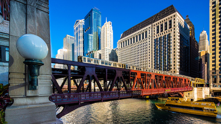 The Wells Street Bridge is the longest double-deck, double-leaf, bascule bridge built over the Chicago River, and only one of two remaining bascule bridges in the city of Chicago that carries both automobile and transit (Chicago Transit Authority elevated trains) on two levels.