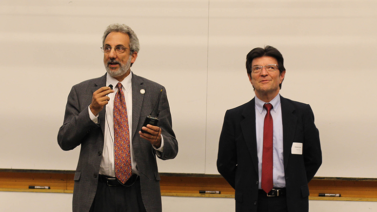 “We have all celebrated Ted periodically over the years,” said Hajjar, CDM Smith Professor and Department Chair of Civil and Environmental Engineering at Northeastern University. “We keep celebrating Ted, not just for his great technical contributions, which have been so profound, but because of how he showed us a path to be a great person, a great humanitarian. You have taught us all so much about just how to live life and how to love life, and how to love our profession.”