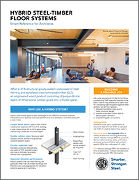 Modern hybrid steel and mass-timber systems utilize the strengths of both materials to achieve highly efficient and attractive structural systems. This new guide provides a multi-disciplinary review of the design considerations that impact structural design of hybrid steel-framed structures with mass-timber floors, including fire, acoustics, and sustainability.