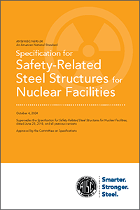 2024 Specification for Safety-Related Steel Structures for Nuclear Facilities (ANSI/AISC N690-24)The 2024 Specification for Safety-Related Steel Structures for Nuclear Facilities supersedes the 2018 edition and is derived from the 2022 Specification for Structural Steel Buildings. The latest revision of this standard includes significant updates to the requirements for steel-plate composite structural elements incorporating the latest research, a new appendix containing special design provisions for impactive and impulsive loading, and modifications to the nondestructive testing provisions for ultrasonic and radiographic testing. |